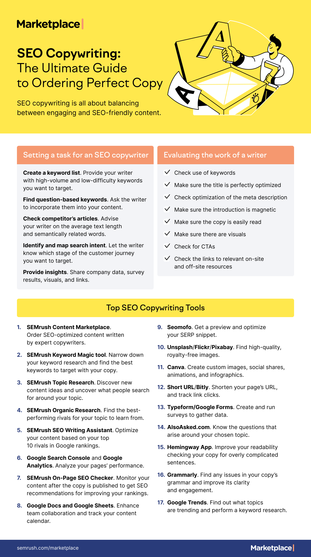And when you’re ready to start designing your own custom infographic, we can help. With the Semrush Marketplace, you can partner with the perfect designer to create a custom infographic to tell your unique data story.
