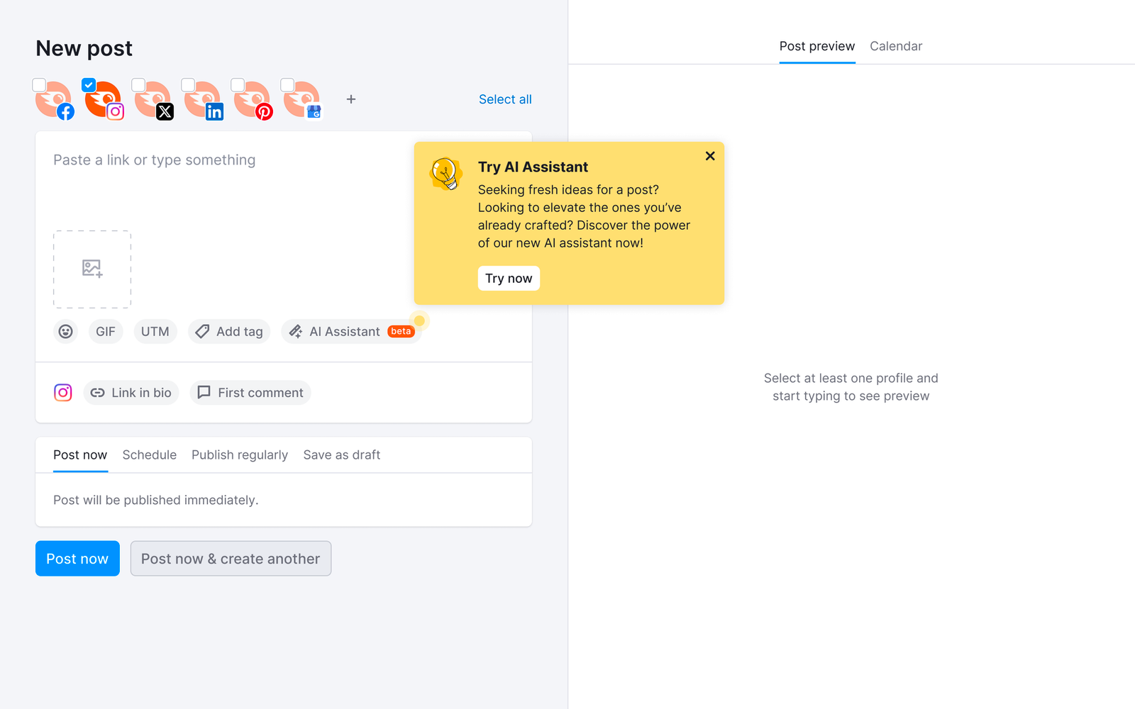 Jot down content ideas or even full-fledged posts you want to circle back to. Save your content in drafts to edit and publish later. This is an excellent asset for team collaboration, as it allows multiple team members to review a post before it is scheduled.